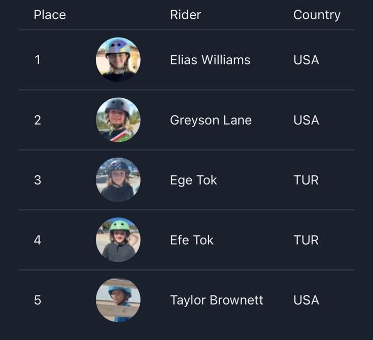 • Park disiplininde, son iki yılın sonuçları baz alınarak oluşturulan 12 yaş ve altı dünya sıralamasında