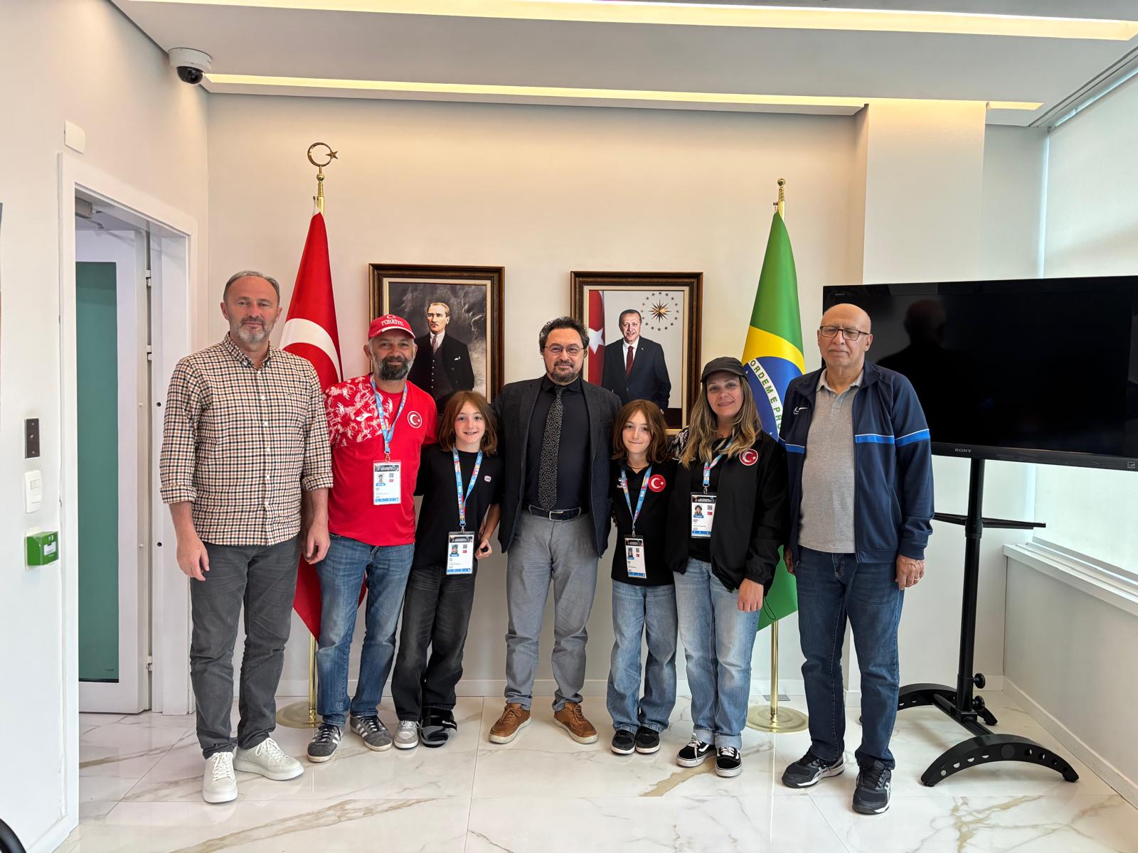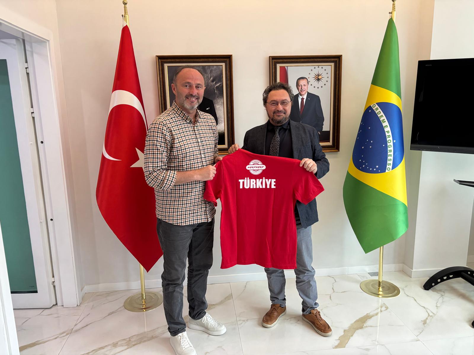 Dünya Şampiyonası için Brezilya’nın São Paulo kentinde bulunan Türkiye Kaykay Federasyonu Genel Sekreteri Mustafa Elduran ve Asbaşkan Mustafa Yasin Taş, milli sporcularımız Ege Tok ve Efe Tok’un yarışma süreci kapsamında Türkiye Cumhuriyeti São Paulo Başkonsolosu Sayın Özgür Uludüz’e ziyarette bulundu.